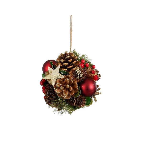 Ornament bauble red bordeaux d. green 3 assorted – l17xw14,5xh3cm