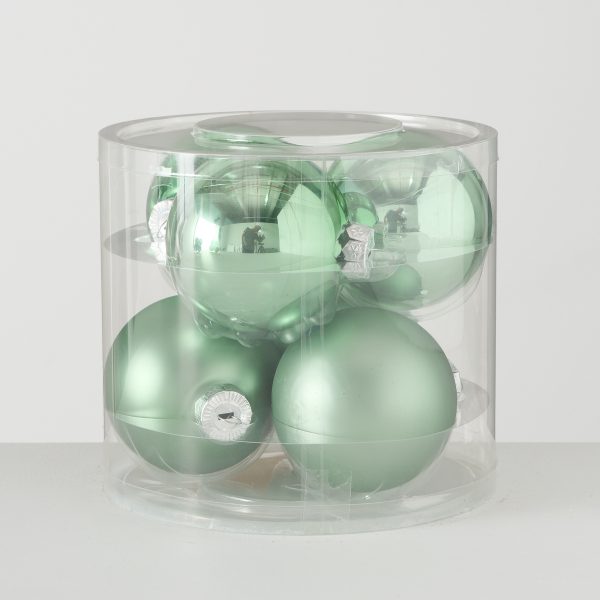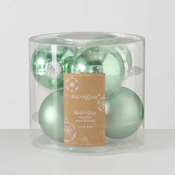Christmas ball , 6 p., D 8,00 cm, Glass laquered, Single-colour, Sage green glass laquered sage green