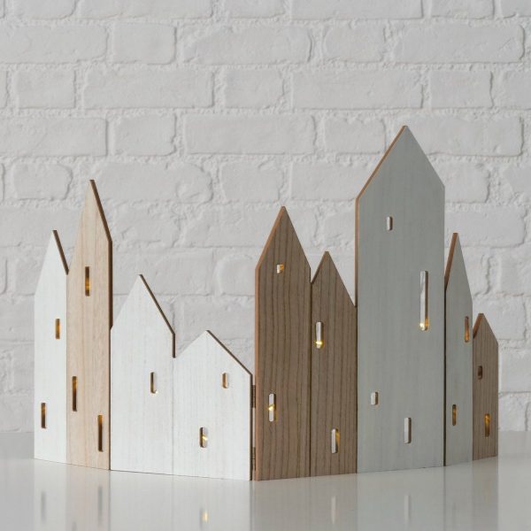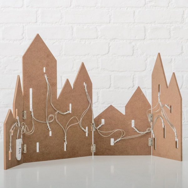 Decorative object Dogas, Rectangle, House, LED, H 37,5 cm, Pine (Pinus spp.), Eucalyptus (Eucalyptus urophylla), MDF mix