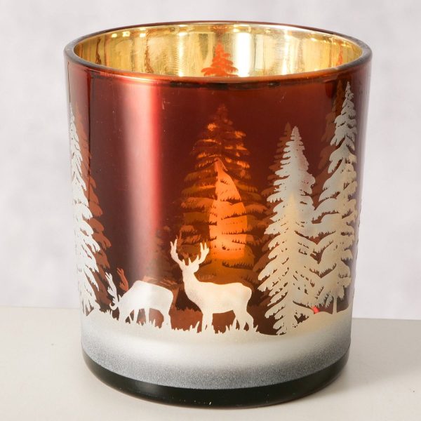 Windlight Winty, Round, H 8 cm, Glass lacquered, Multi-coloured, Motif glass laquered red