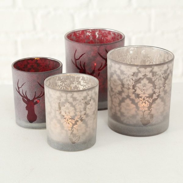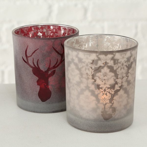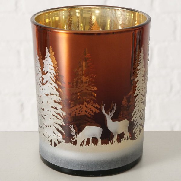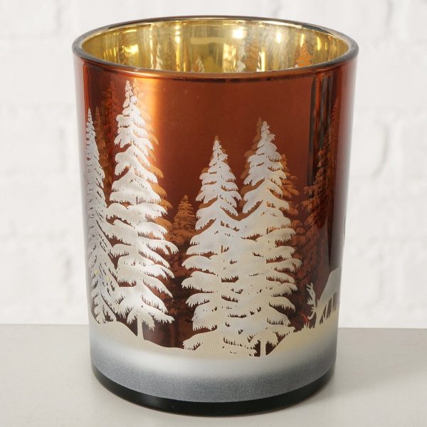 Windlight Lorel, Round, H 8 cm, Glass lacquered, Multi-coloured, Motif glass laquered brown