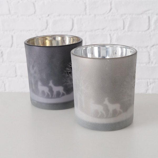 Windlight Soma, 2 p., 2 ass., Set 2, Round, H 8-10 cm, Glass, Grey, Light grey Glass colour-mix