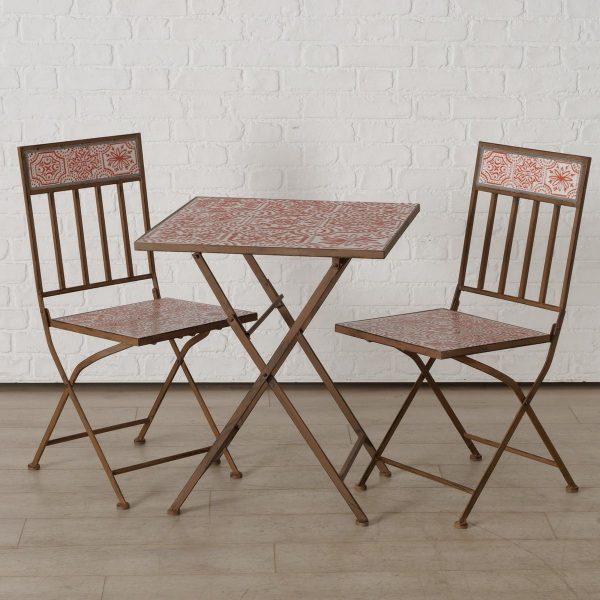 Furniture set Rosso, 3 p., Set 2, Chairs / :2, Table / :1, H 71,50-88,00 cm, Iron powder coated, Stoneware, Multi-colour