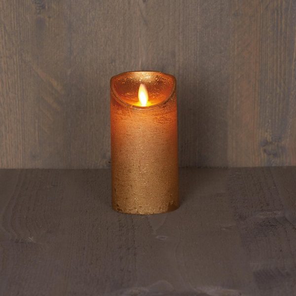 RUSTIC WAX CANDLE MOVING FLAME 7.5X15 CM GOLD 3XAA W/TIMER