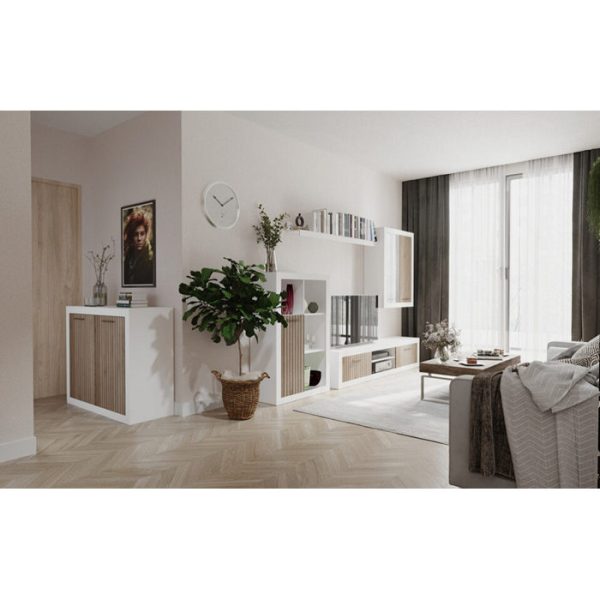 MARSEILLE SET/4 (nymphaea alba / tablilla)+lighting (TV UNIT, SHELF, WALL SHOWCASE, CABINET) 70/200/40cm melamine (assembling instructions included)