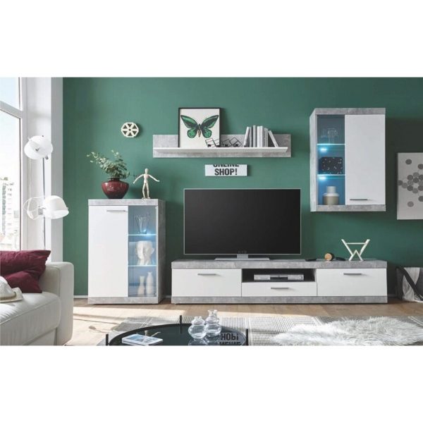 MARSEILLE SET/4 (nymphaea alba / tablilla)+lighting (TV UNIT, SHELF, WALL SHOWCASE, CABINET) 70/200/40cm melamine (assembling instructions included)