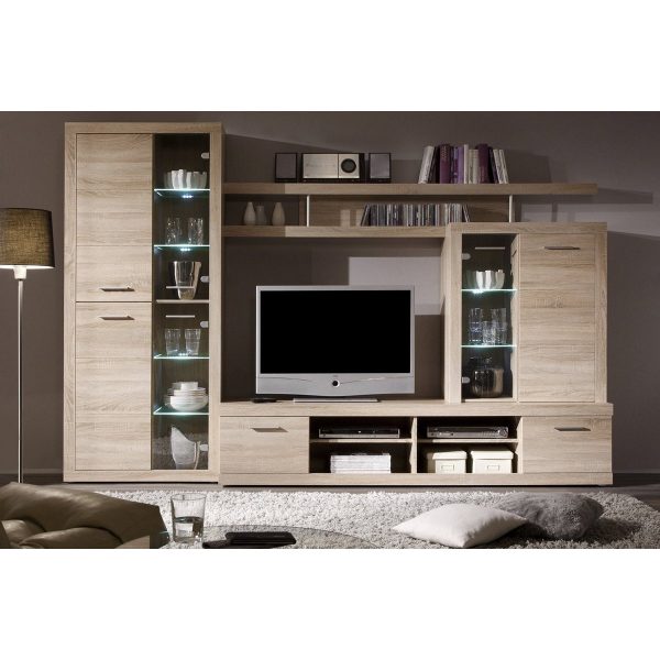 NICE SET/4 sonoma oak/nymphaea alba w/illumination (TV 2 SHELVES, WALL CABINET, CABINET) 290/190/48cm melamine (assembling instructions included)