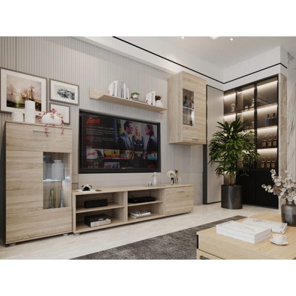 OSAKA SET/4 oak sonoma +lighting (TV CABINET, CABINET, SHELF, WALL CABINET) 210/190/38,50cm melamine (assembling instructions included)
