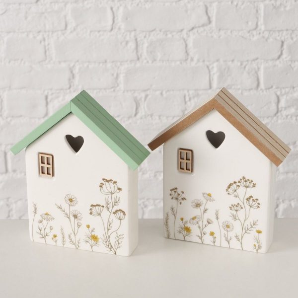 Decorative object Meadow, 2 ass., House, H 18,50 cm, MDF, Plywood, Porcelain, Floral