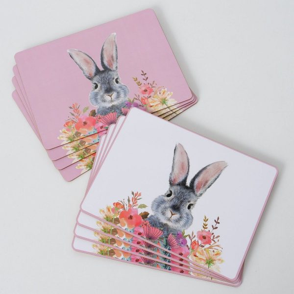 Placemat Puschel, 2 ass., MDF, Multi-coloured, Motif, Floral, Mat, Grey, Light rose, White MDF colour-mix