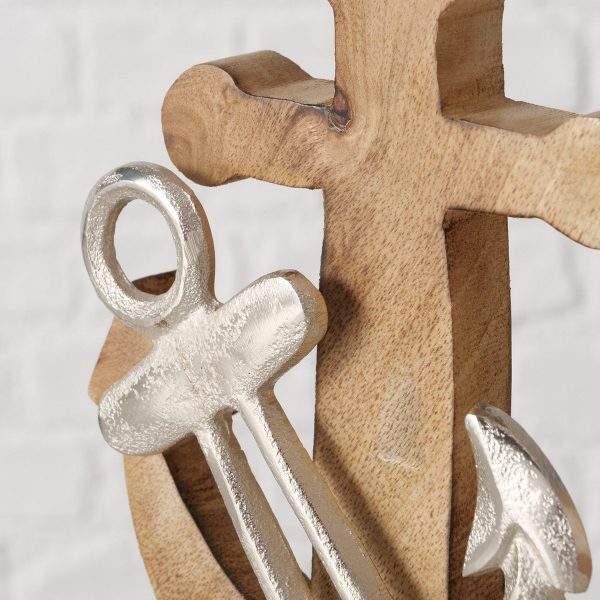 Decorative object Leif, Anchor, with stand, H 20,5 cm, Mango (Mangifera indica), Alu nickle mixed materials colour-mix