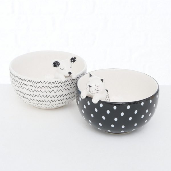 Cereal bowl Alyna , 2 ass., 440 ml, H 10,00 cm, Dolomite, Multi-coloured, Dotted, Striped dolomite colour-mix