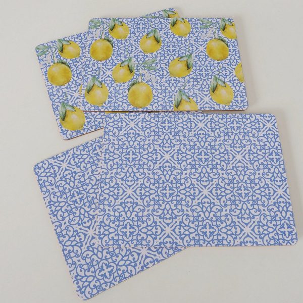 Placemat Capri, 2 p., 2 ass., Cork oak (Quercus suber), MDF, Multi-coloured, Motif, Ornament, Lemon, Mat mixed materials