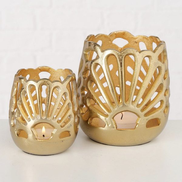 Windlight Tyria, 2 p., Set 2, Round, H 10-13 cm, Aluminium, Single-colour aluminium gold