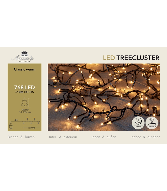 1.6-1.9M TREECLUSTER 10M/768LED CLASSIC WARM-4MTR LEADCABLE-36V/IP44 TRANSFORMER 7.2VA-CLOURBOX