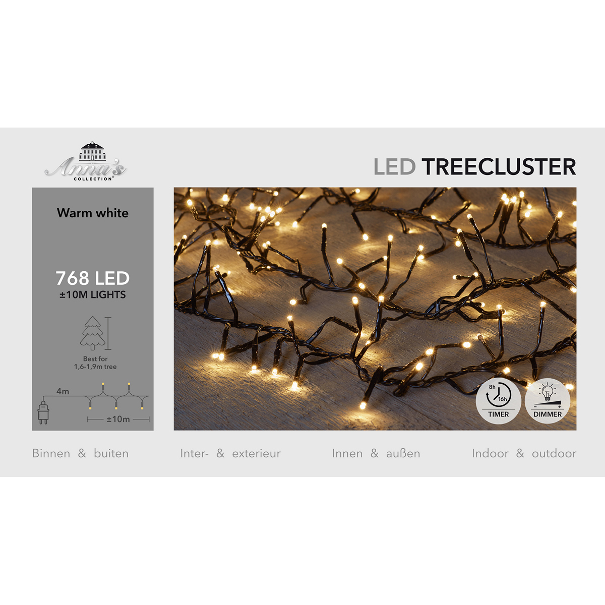 1,6-1,9M TREECLUSTER 10M/768LED WARM WHITE – 4MTR LEADCABLE – 36V/IP44 TRANSFORMER 6VA WITH ON/ 8/16H TIMER/OFF FUNCTION