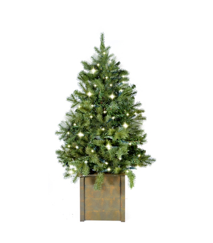 3’/91CM PLASTIC PINE TREE WITH 150 LIGHTS METAL SQUARE POT