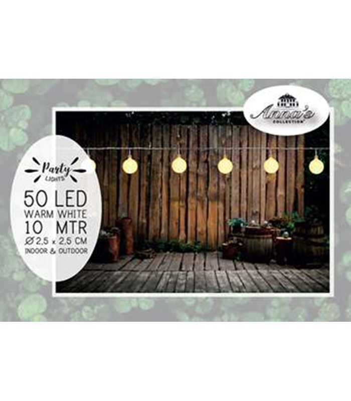 HomeSHOPCHRISTMAS COLLECTIONChristmas Lighting 50 LED 2,5CM PARTYLIGHT WARM WHITE 3MM LED / SPACING 20CM / LEADCABLE 5MTR / 31V/IP44 TRANSFORMER 3.6VA / COLOURBOX