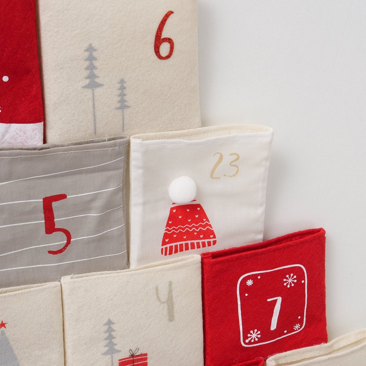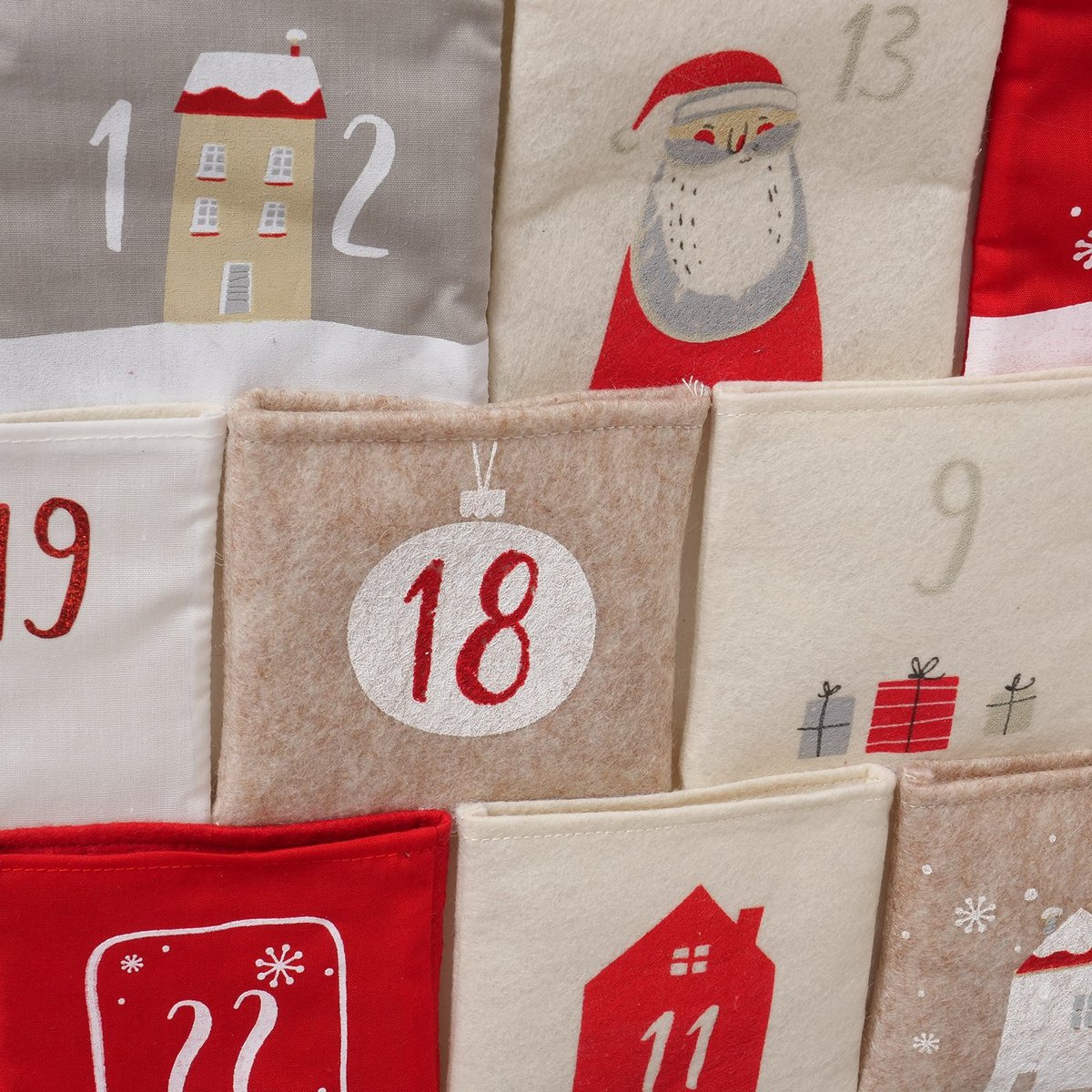 Advent calendar Halmstad, H 67 cm, Cotton, Polyester-felt, Linen, No, Multi-coloured mixed materials colour-mix