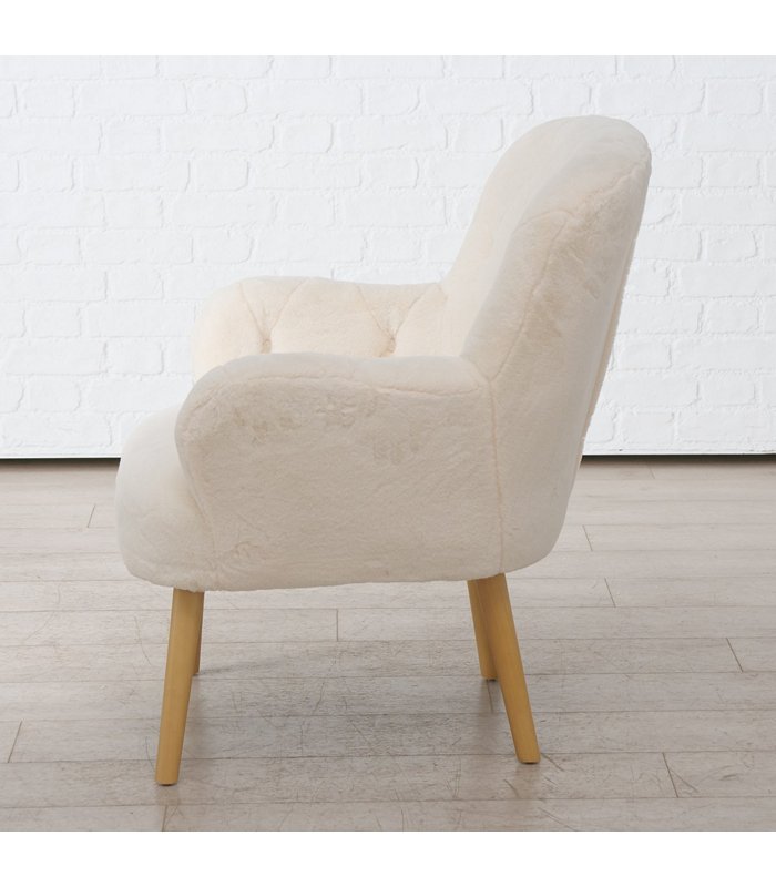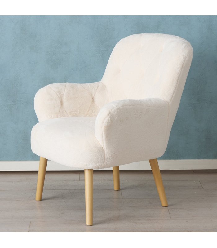 Armchair Charles, H 82,00 cm, Pine (Pinus spp.), Elm (Ulmus), Polyester, Single-colour, Cream white, Natural mixed mater