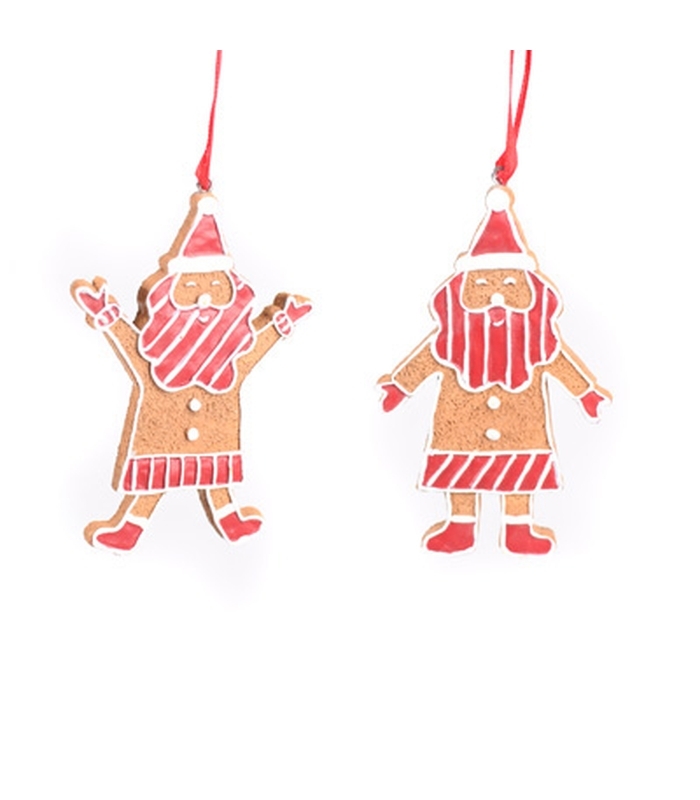 ASS/2 RESIN COOKIE SANTA ORNAMENT, RED + BROWN 7X0,9X11 CM