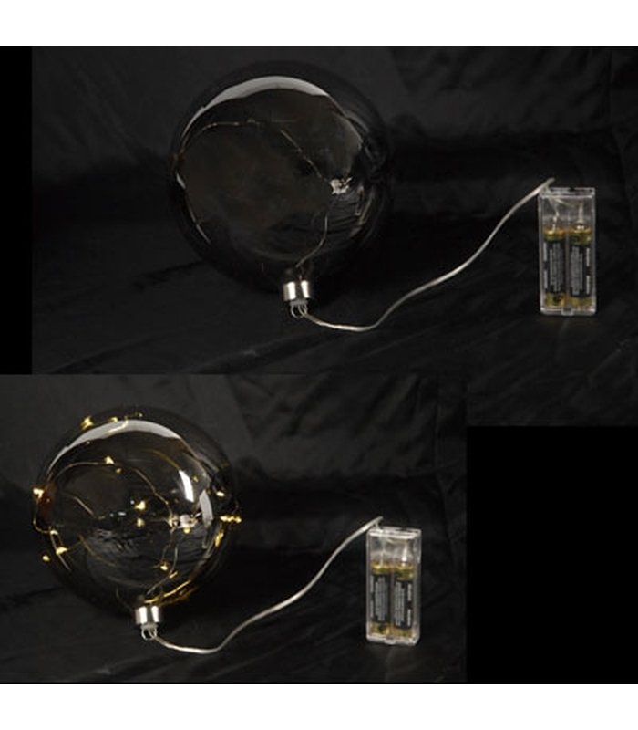 B.O. 1 GLASS BALL ANTHRACITE 15CM 10 LED WARM WHITE 2XAA