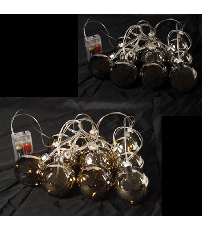 B.O. 10 GLASS BALL ANTHRACITE 6CM EACH BALL 3 LED WARM WHITE SPACING BETWEEN 20CM