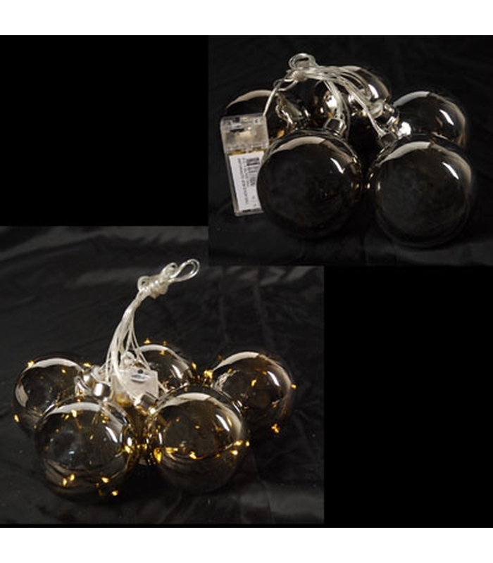 B.O. 5 GLASS BALL ANTHRACITE 8CM EACH BALL 5 LED WARM WHITE SPACING BETWEEN 30CM