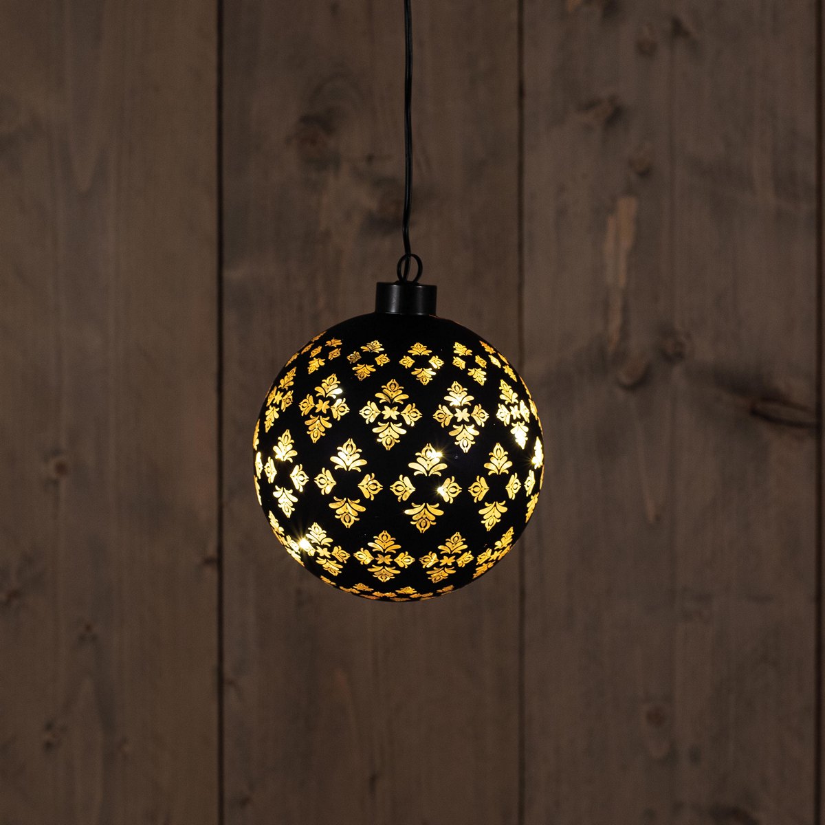 B.O. GLASS BALL BAROQUE BLACK/GOLD 12CM / 10LED WARM WHITE / GOLD INSIDE / 2XAAA/COLOURBOX