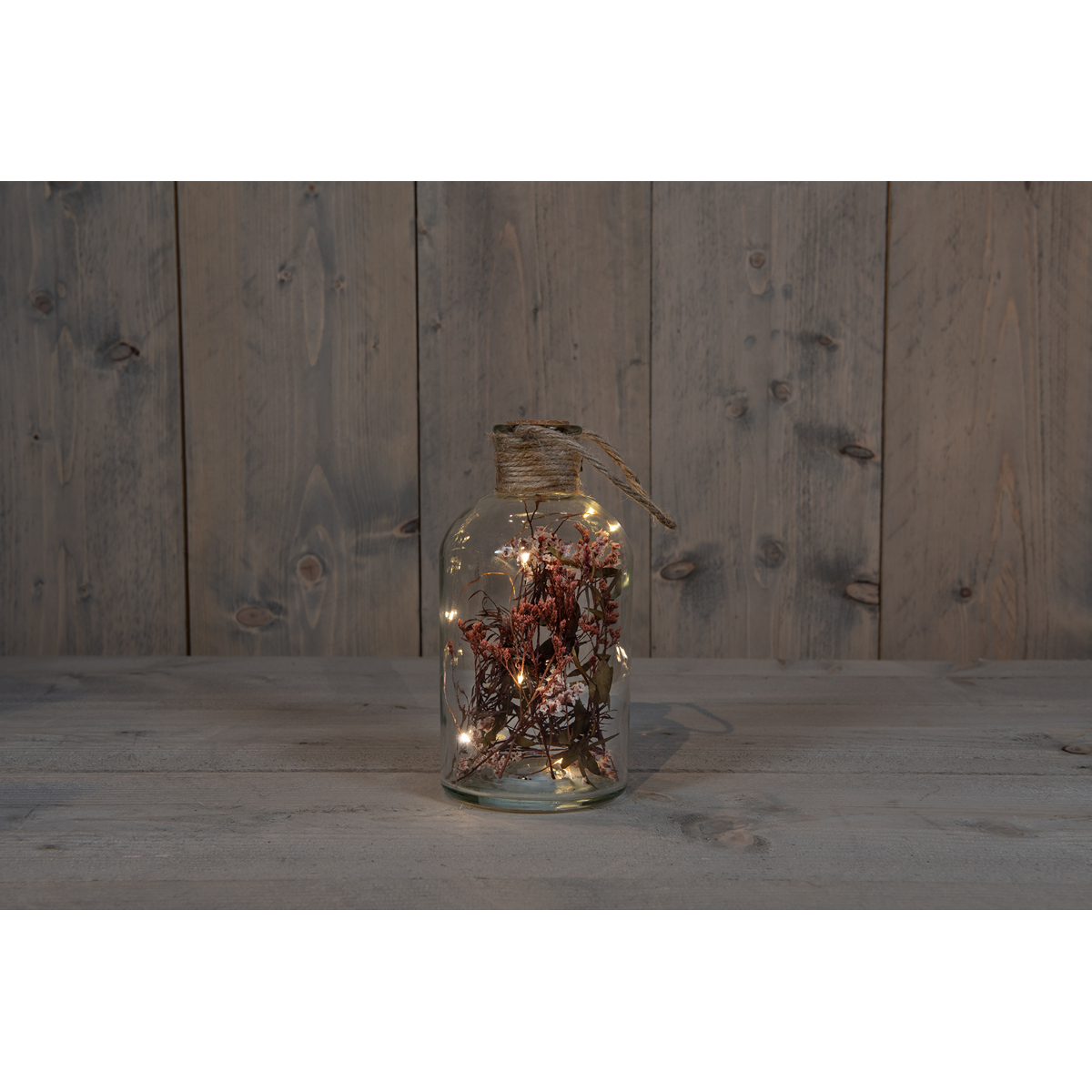 HomeSHOPCHRISTMAS COLLECTIONChristmas Lighting B.O. GLASS BOTTLE WITH DRIED PINK FLOWER 9,5X20CM 10LED WARM WHITE INCL 2XCR2032 / HANGTAG