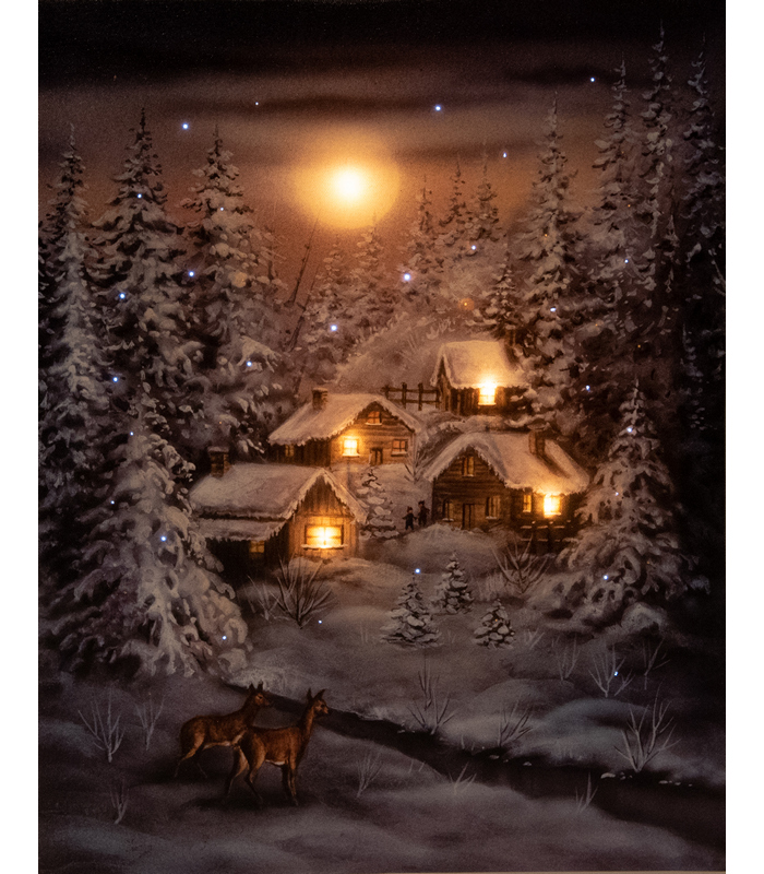 B.O. LED INDOOR CANVAS 38X48CM DEER FULL MOON 5LED IN HOUSE LED BIG MOON + 42 FIBER SNOW – 2AA