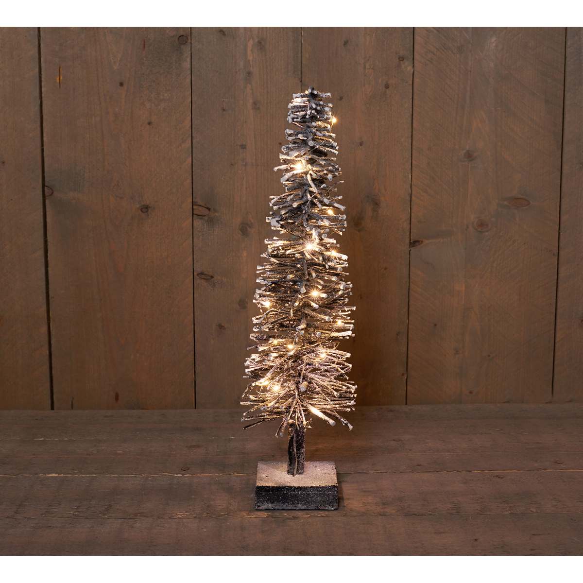 B.O. RATTAN TREE BLACK WITH SNOW 60CM/ 20LED WARM WHITE / 2AA / HANGTAG