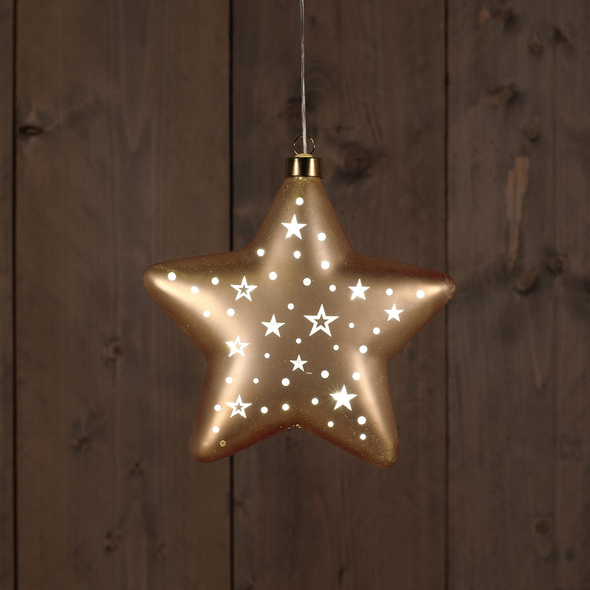 B.O. STAR GLASS MATT GOLD WITH STARS 19CM / 10 LED WARM WHITE / SILVER INSIDE 2XAAA /COLORBOX