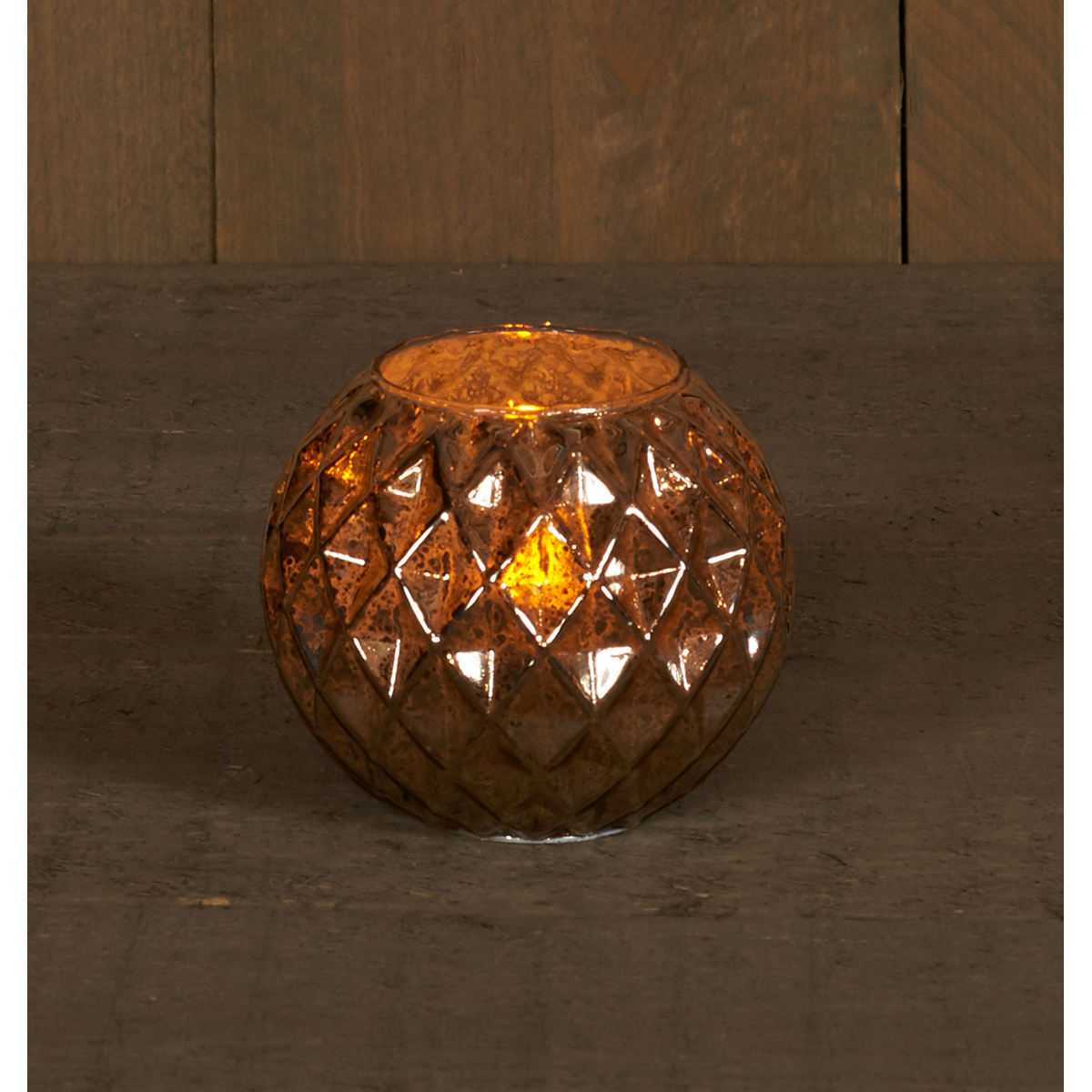 B.O.T. OLD SILVER GLASS 12X10CM WITH MOVINGFLAME CANDLE INSIDE – 2XAAA WITH 6/18H TIMER / GIFTBOX