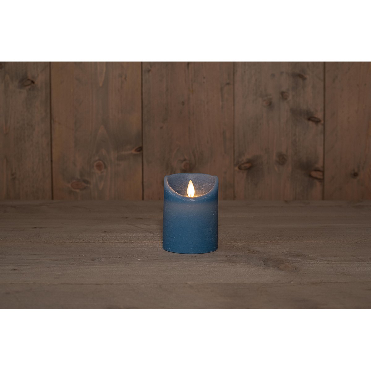 B.O.T. RUSTIC WAX CANDLE DENIM BLUE MOVING FLAME 7,5X10CM 3 X AAA WITH 6/18H TIMER / GIFTBOX