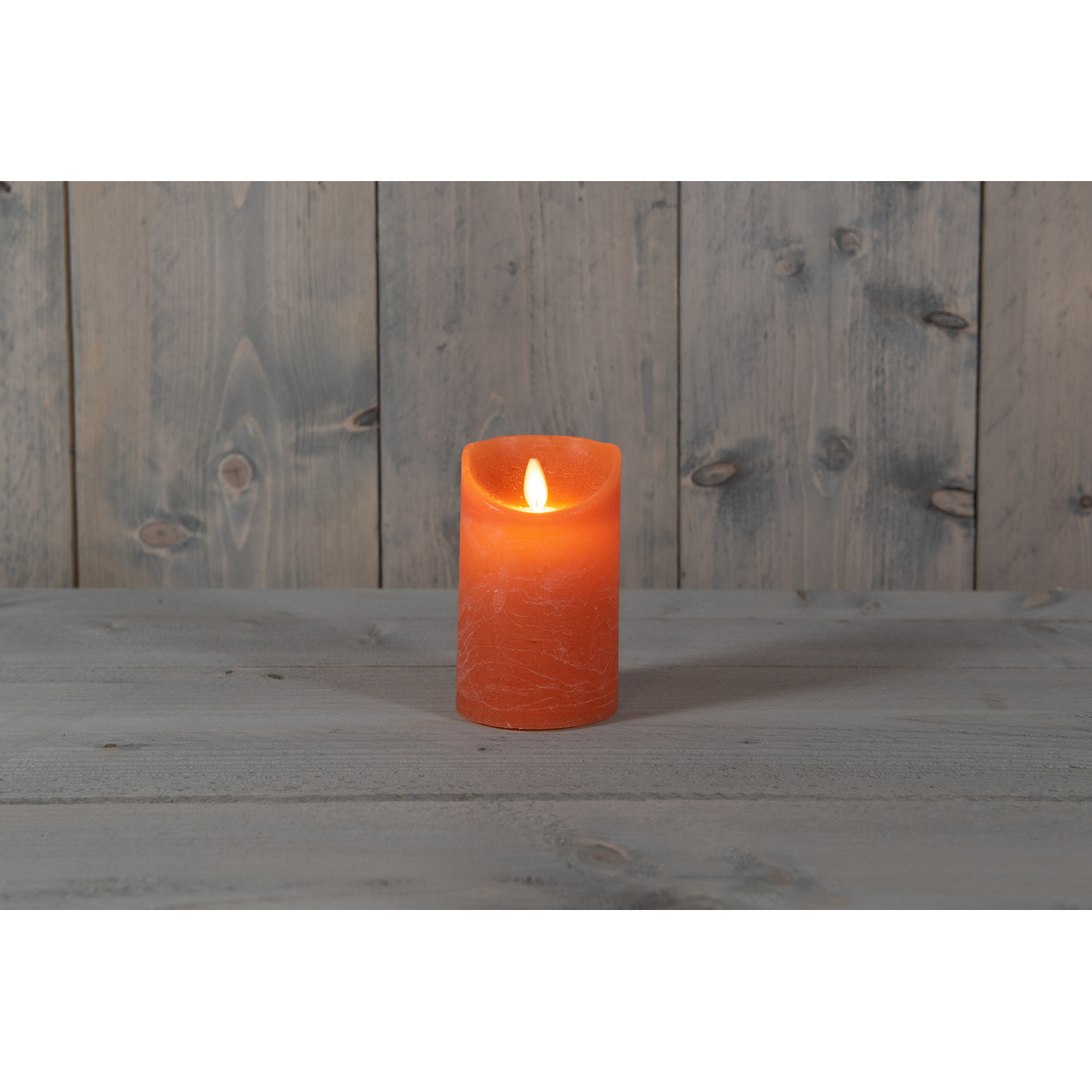 B.O.T. RUSTIC WAX CANDLE MOVING FLAME 7,5X12,5CM ORANGE 3AAA WITH 6/18H TIMER / GIFTBOX