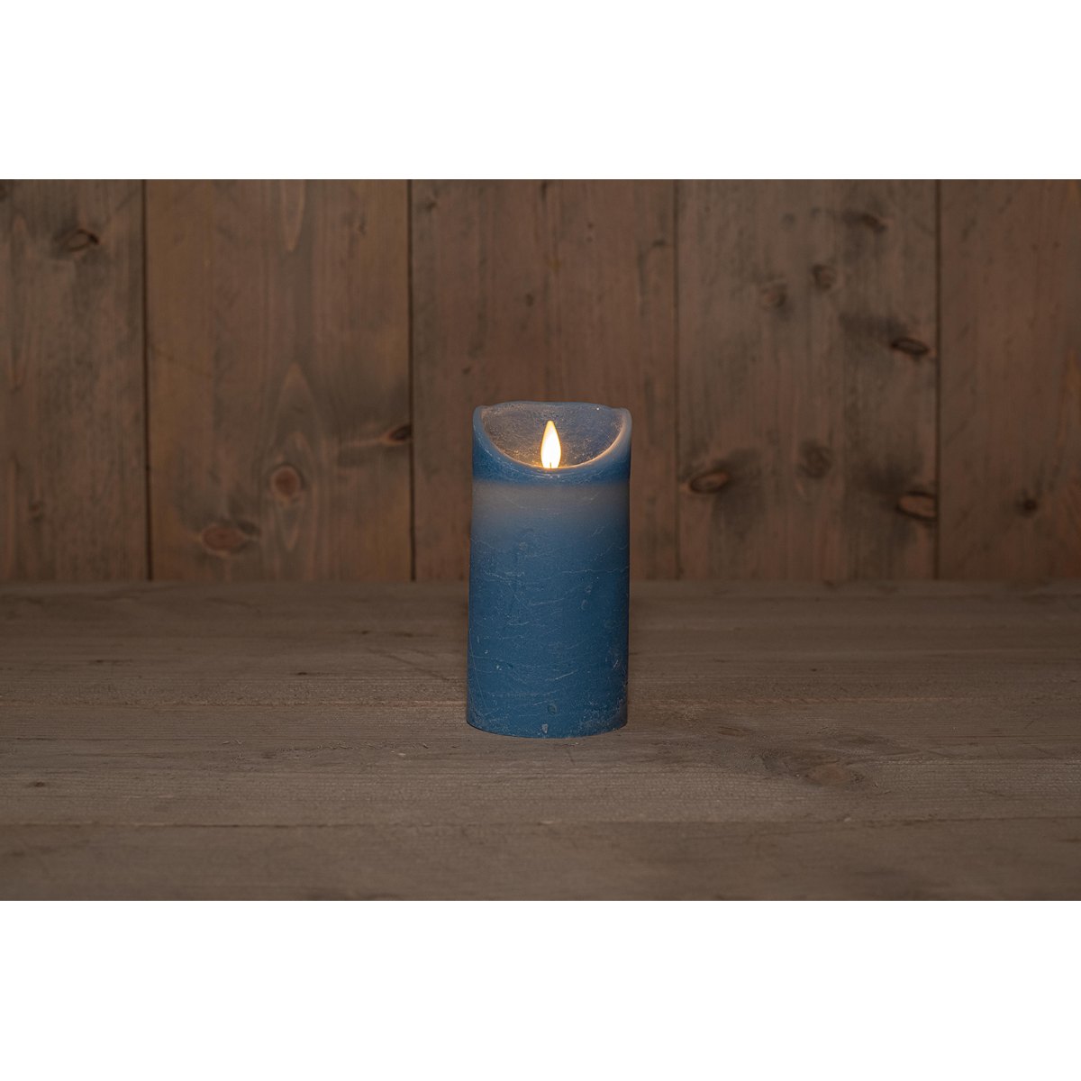 B.O.T. RUSTIC WAX CANDLE MOVING FLAME 7,5X15CM BLUE 3 X AAA WITH 6/18H TIMER / GIFTBOX