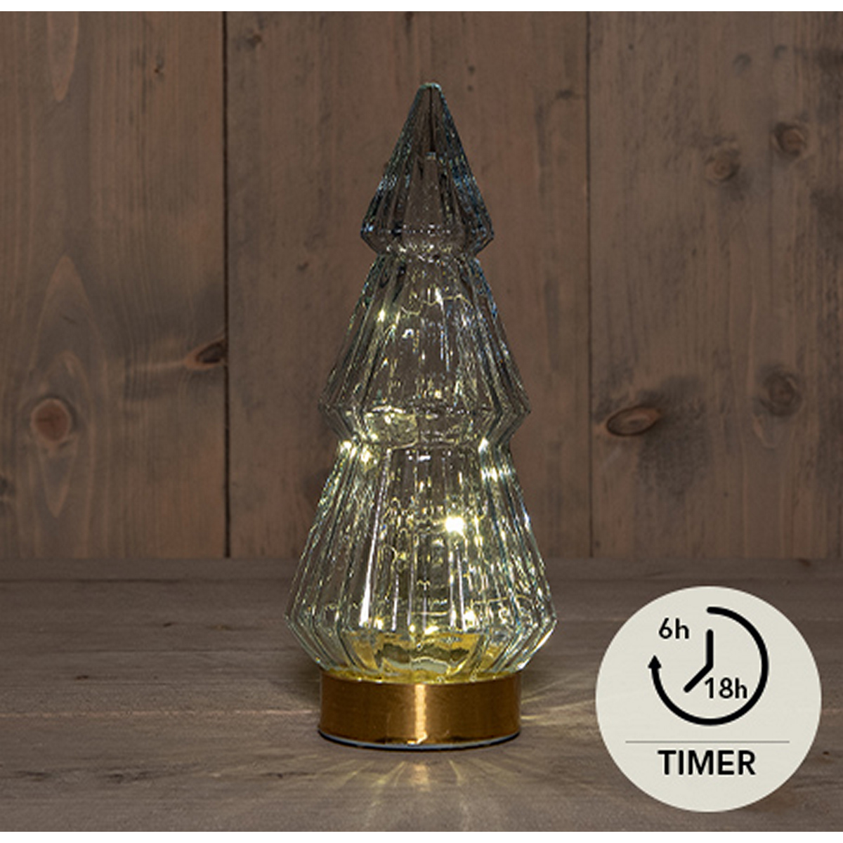 B.O.T. TREE GLASS 10X23,5CM GREY WITH GOLDEN BASE 10LED 3XAAA WITH ON/OFF/6H TIMER / STICKER AT BOTTOM
