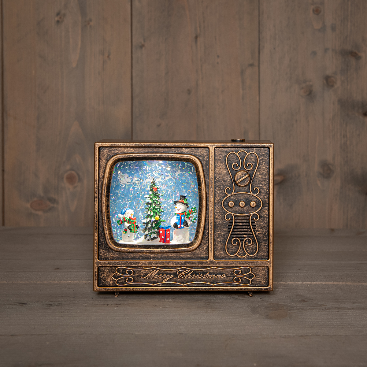 B.O. TV SNOWMAN IN GLITTER WATER LED WARM WHITE/18X16CM/3XAA WITH DC SOCKET/COLORBOX