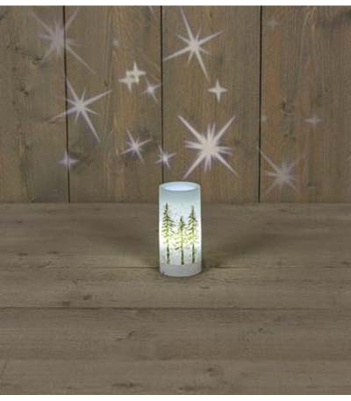 B.O. WHITE CANDLE WITH TREE PRINT 7X15CM LED WHITE STAR PROJECTION 3XAAA / INCL. 1M USB CABLE