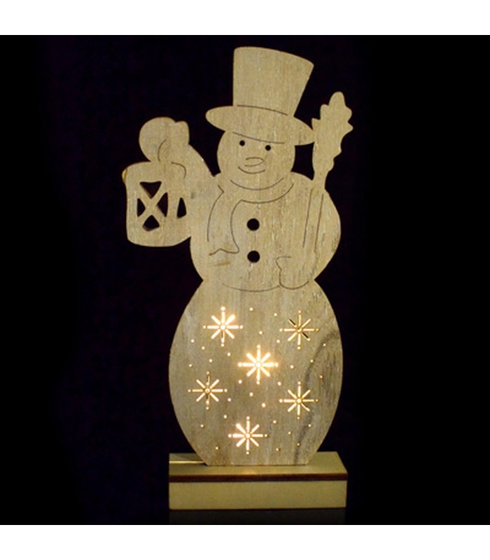 HomeSHOPCHRISTMAS COLLECTIONLed Decoration Objects B.O. WOODEN SNOWMAN WHITE WASH 6 LED 30,5X12CM TWO SIDES IP20/ 2XAA