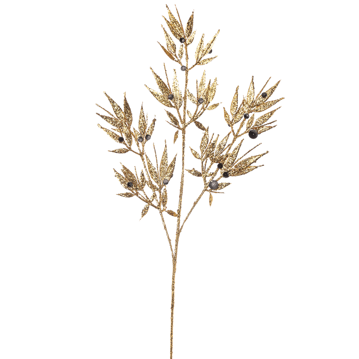 BAMBOO BRANCH GOLD WITH GLITTER AND PINK FLOWER CM.91
