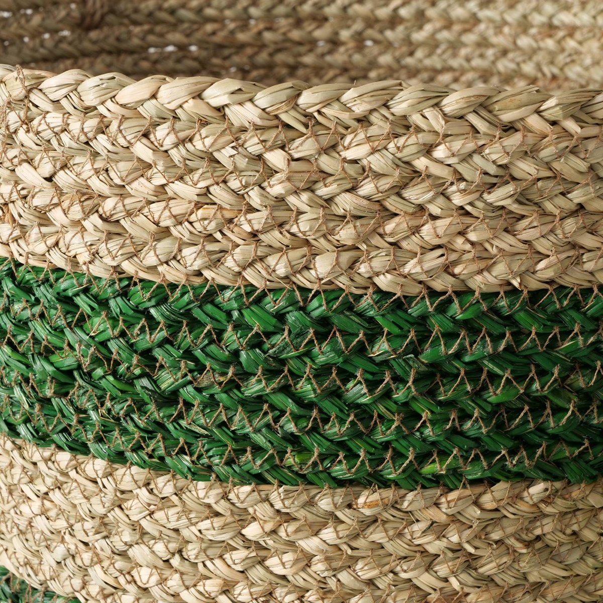 Basket Anissa, 3 p., Set 3, Round, H 27-38 cm, Seagrass, Green, Natural seagrass colour-mix