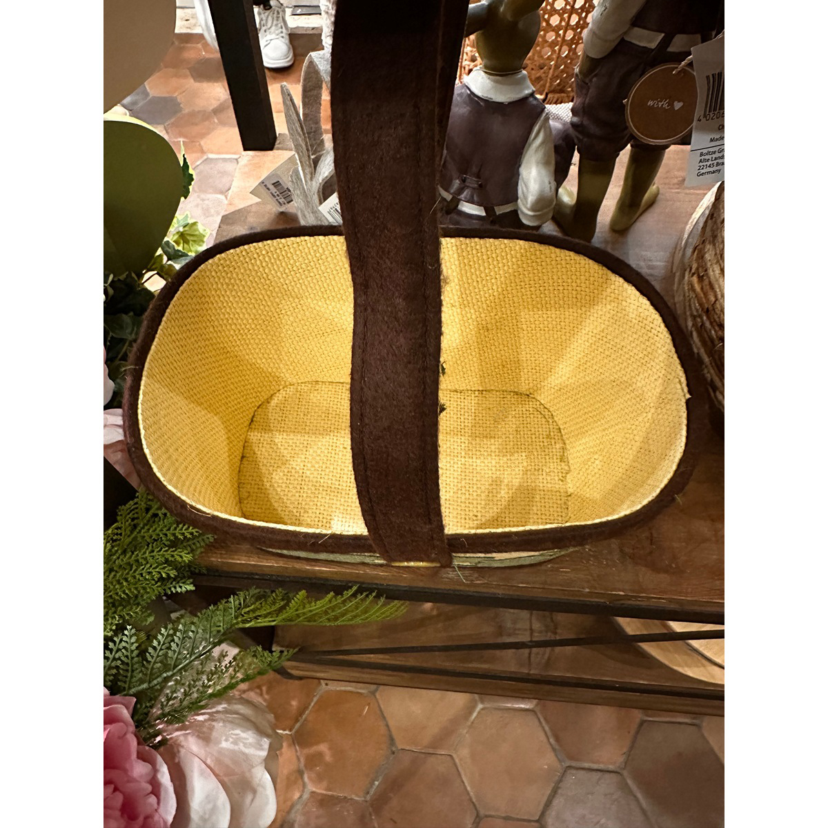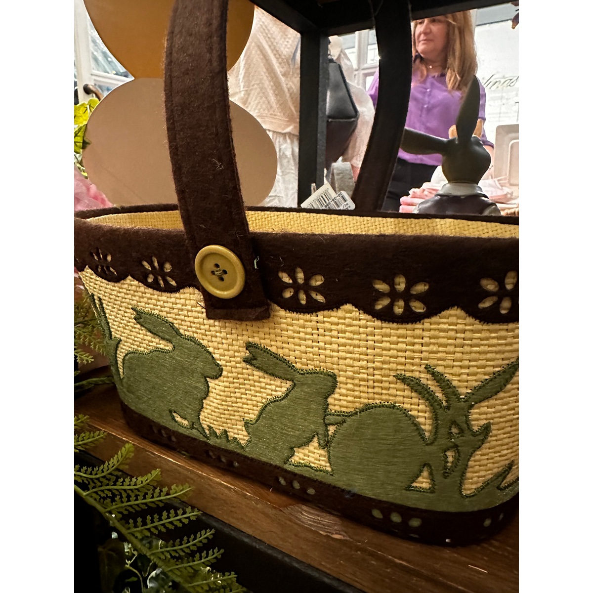 BASKET BEIGE WITH HANDLE BROWN 18Χ12Χ25 CM FOR EGGS WITH RABBITS FABRIC
