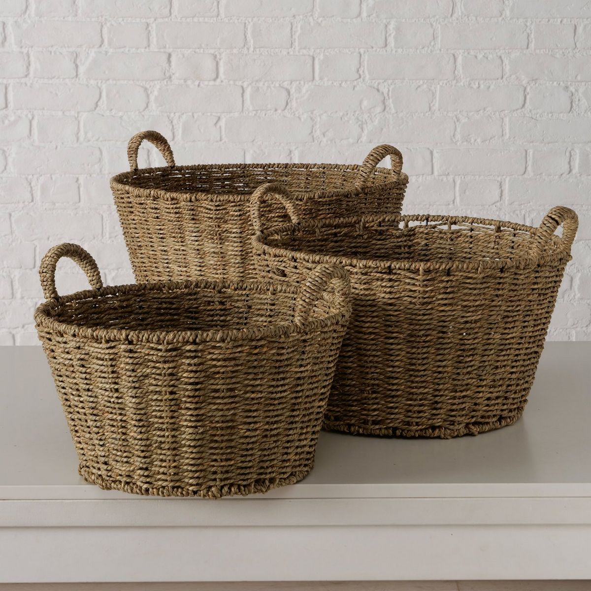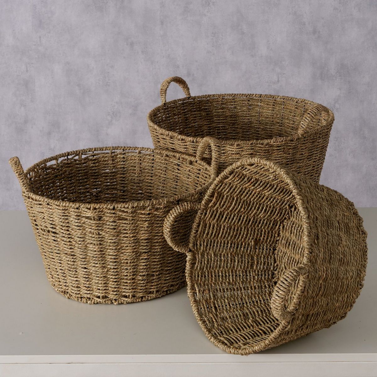 Basket Campania, 3 p., Set 3, Round, H 29,00-37,00 cm, Iron, Seagrass, Natural