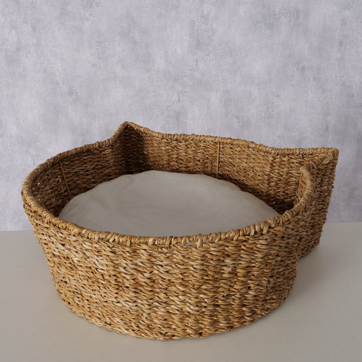 Basket Katze, Decoration, Round, H 18 cm, Iron, Cotton, Seagrass mixed materials colour-mix