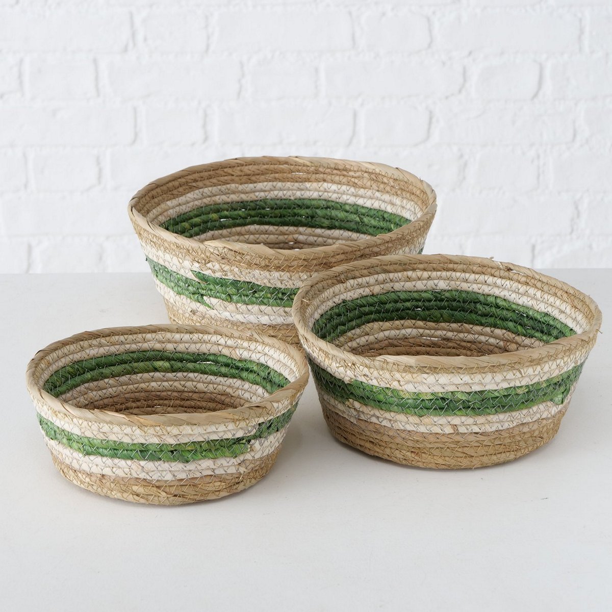 Basket Kavio, 3 p., Set 3, Decoration, Round, H 8-11 cm, D 20-25 cm corn hull colour-mix
