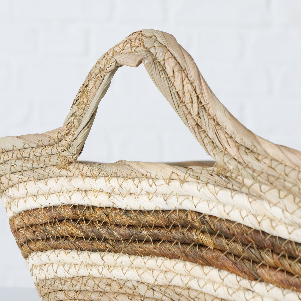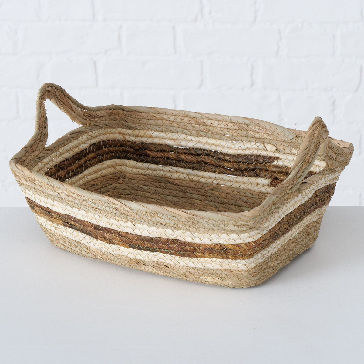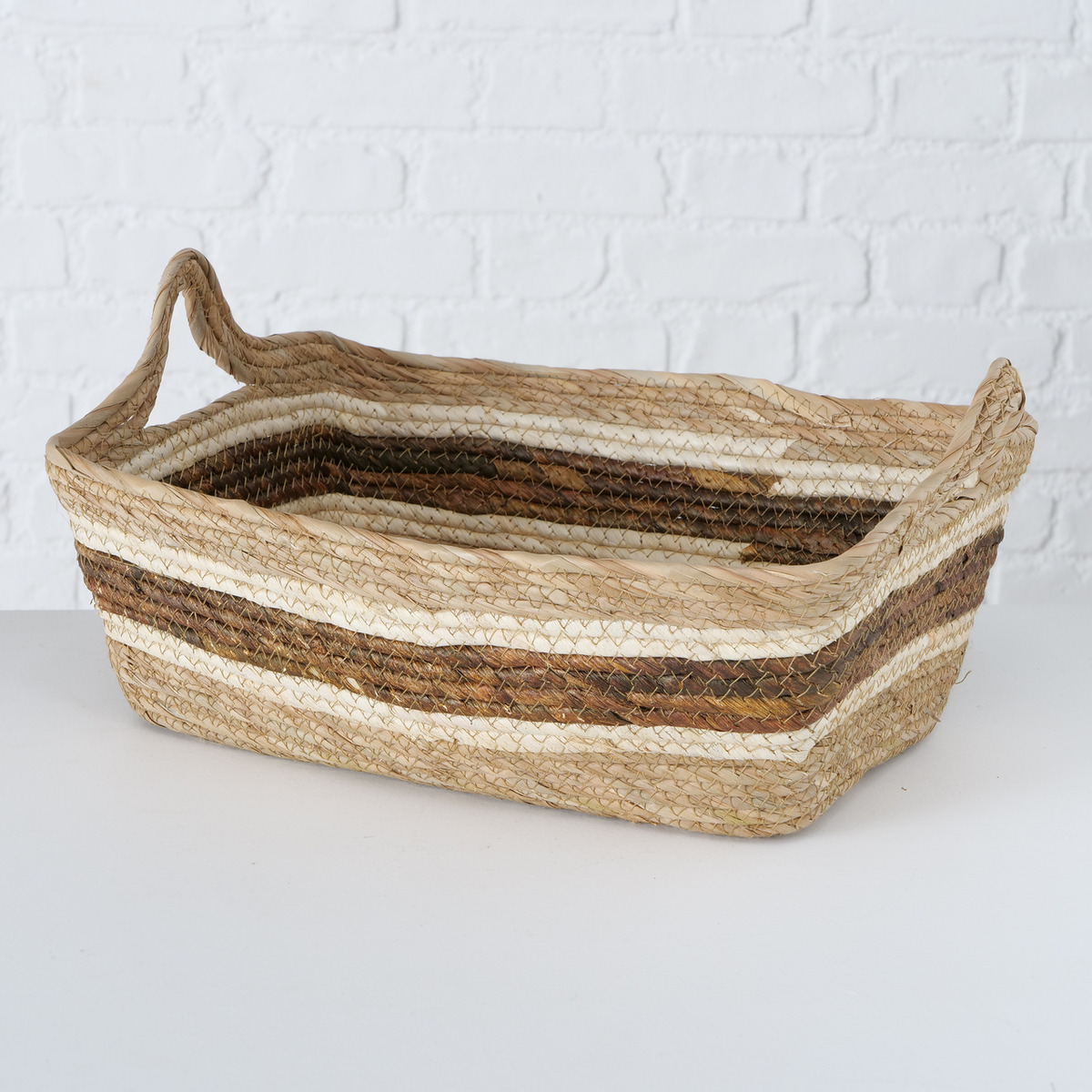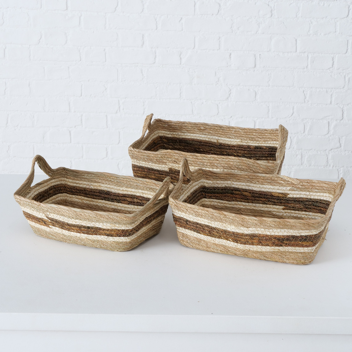 Basket Kavio, 3 p., Set 3, Square, H 14,00-17,00 cm, Corn hull, Light brown, Natural, White corn hull colour-mix