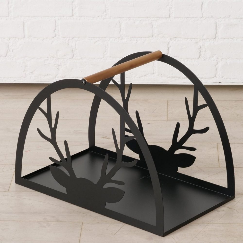 Basket Vilbert, Special shape, H 38 cm, Iron powder coated, Black iron powder coated black