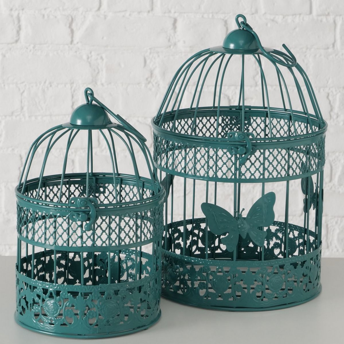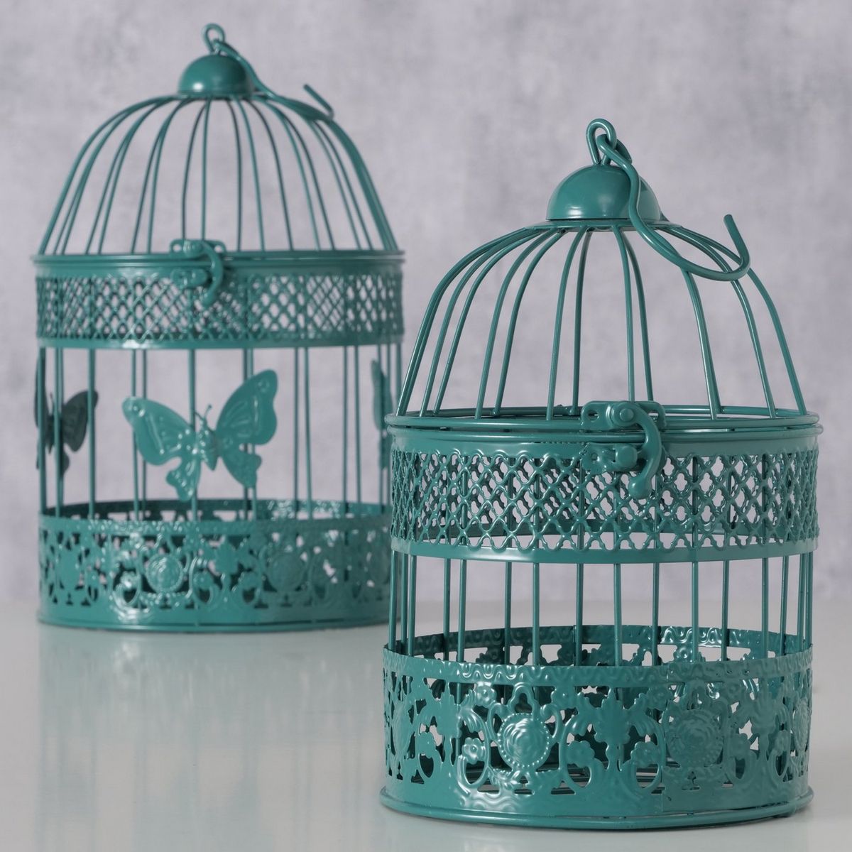 Birdcage Louisa, 2 p., Set 2, Decoration, H 25,00-30,00 cm, Iron powder coated, Dark turquoise